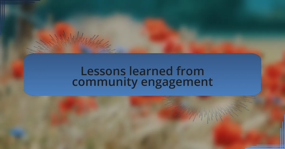 One significant lesson I’ve learned from engaging with the community is the importance of patience. In one instance, while discussing renewable energy options in a neighborhood forum, I encountered resistance from individuals who preferred traditional energy sources. Initially, I felt frustrated, but I realized that change takes time. Have you ever experienced that moment when a conversation shifts from confrontation to curiosity? It can be incredibly rewarding to witness.