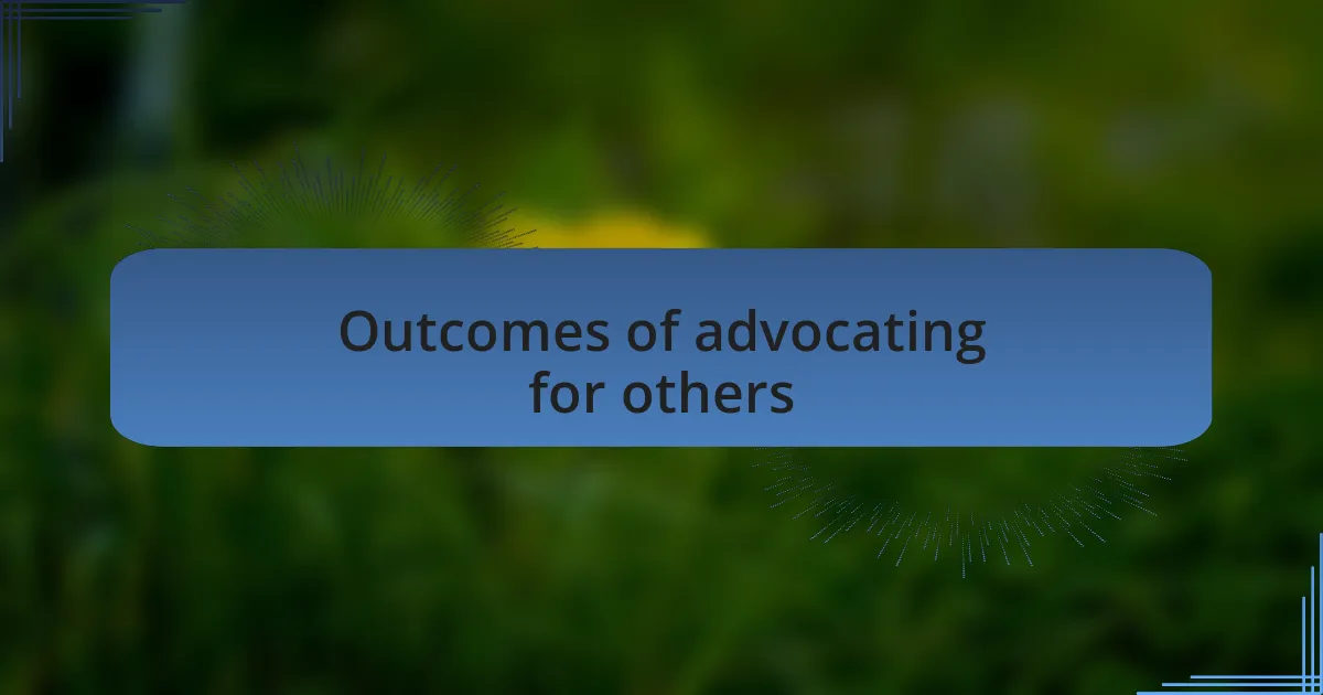 When I think about the outcomes of advocating for others, I can’t help but reflect on the time a community member shared their personal story about pollution in their neighborhood. That moment made me realize how advocacy can amplify the voices of those directly impacted by environmental issues. By sharing their experiences, we not only humanized the statistics but also inspired action within the community. Isn’t it fascinating how a single voice can spark a wider dialogue?