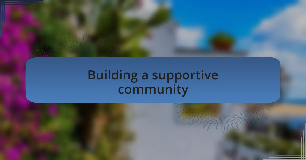 Building a supportive community requires an intentional effort to create spaces where everyone feels valued and included. I’ve participated in local environmental groups where we actively welcomed newcomers with open arms and listened to their ideas without judgment. It was inspiring to see how a simple, warm greeting could turn a nervous first-timer into a passionate advocate. Think about it: how often have you felt empowered simply by being part of a welcoming atmosphere?